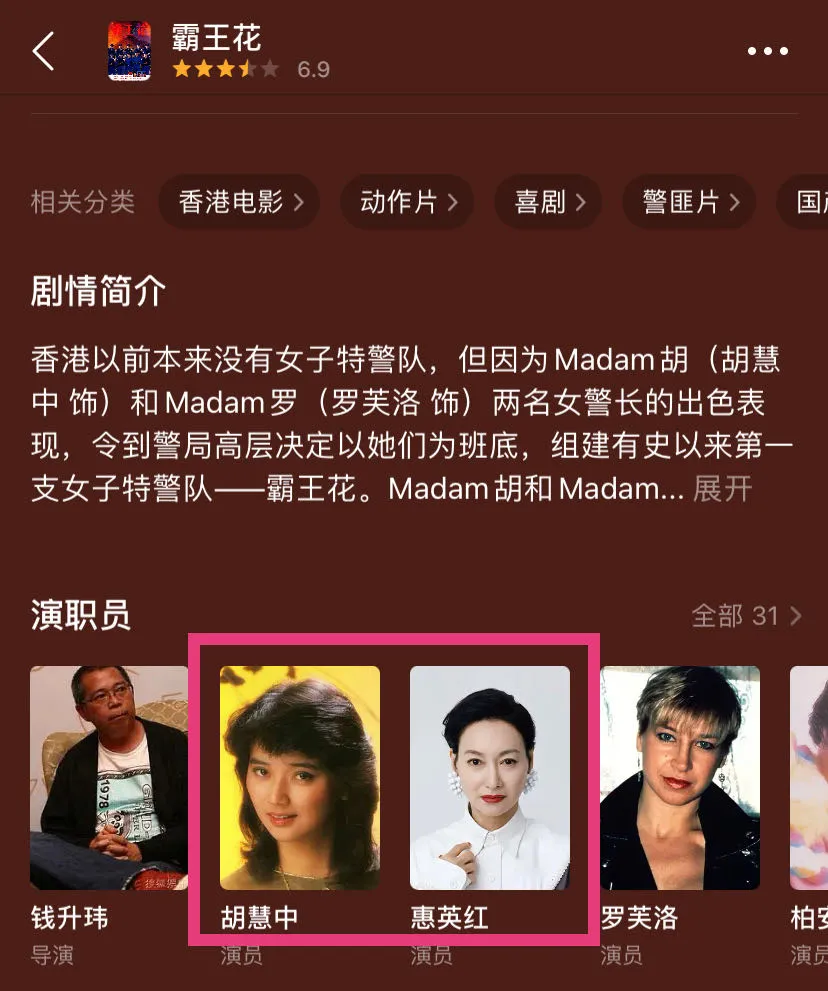 胡慧中饰演的女警霸王花,一头利落干练的短发,行云流水的打戏,让她火上巅峰,甚至,影后惠英红在片中都只是给胡慧中配戏的小配角。