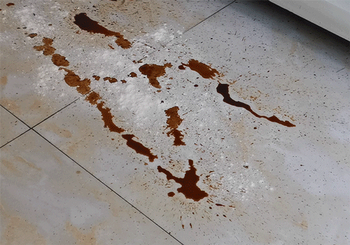 地面的污水就没多大必要跟大家演示,像一般的大吸力吸尘器也能吸水渍。我这里主要跟大家演示晾干的地面污渍,我在地上洒了酱油和面粉,静待两小时晾干。