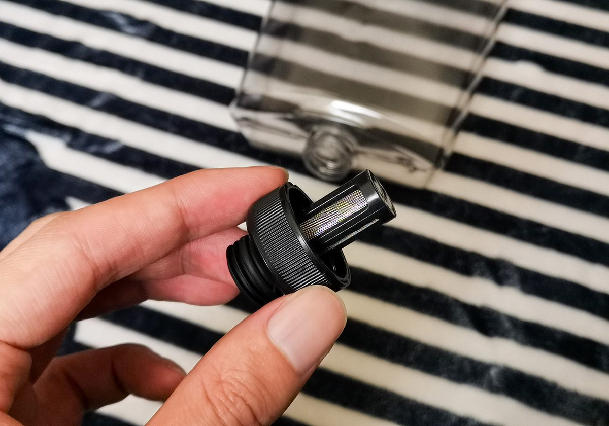 由于清水箱是倒置装机,所以壶盖还有类似轮胎气门的设计,可以防止拆装水箱时漏水。