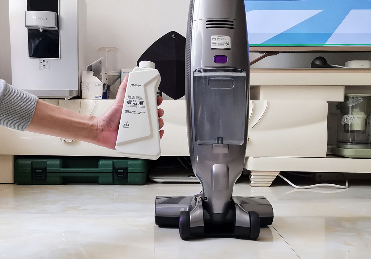 莱克随机配备了一瓶清洁液,它是低泡中性清洁溶液,用来清洗地板、瓷砖都挺合适。当然也可以用自己的清洁液,注意不要用高泡沫溶剂,以免清扫时吸入泡沫过多,进入内部造成不必要损害。