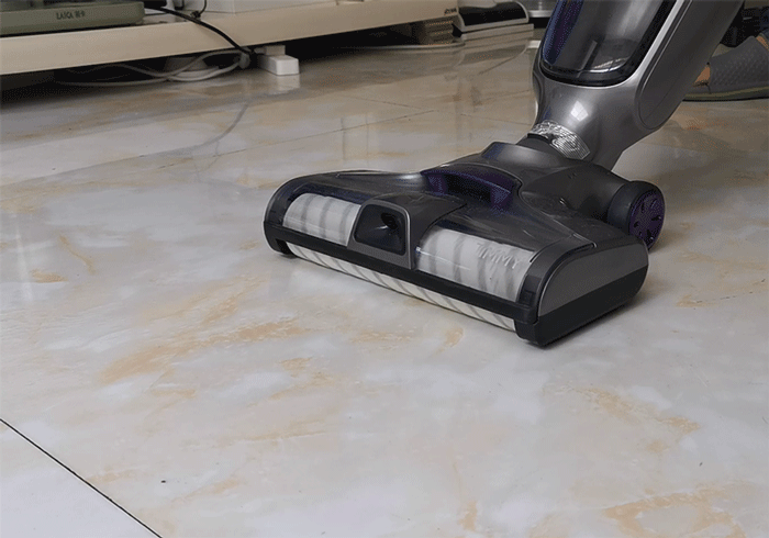 我先是用喷水系统,定点喷洒清洁液,然后来回拖了三四遍,没想到所有的污渍都被清理干净。而且拖过的地面没有水渍,清洁后的地面都是干的,擦完就能立即走在上面,不用担心被滑倒。