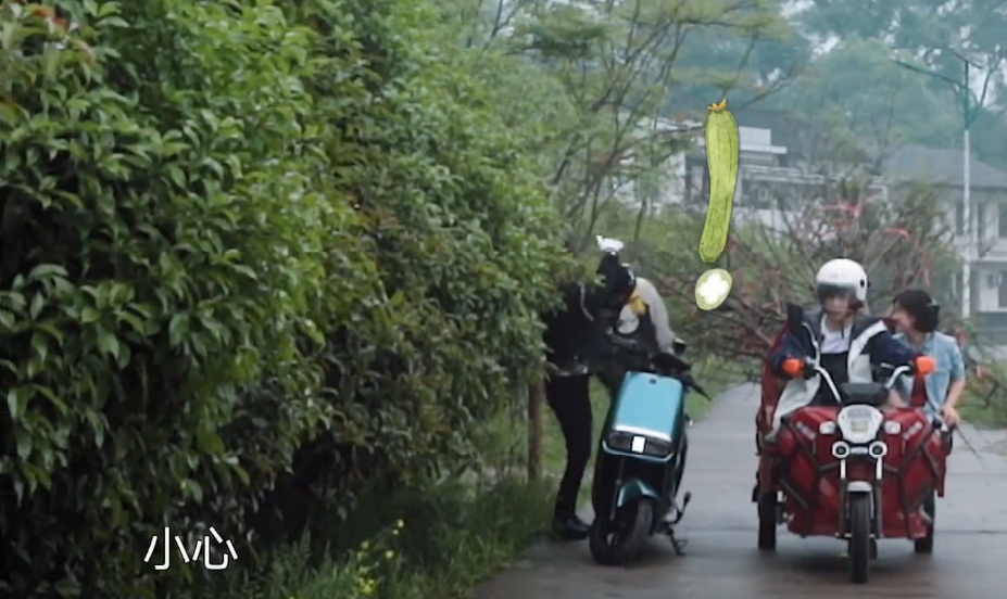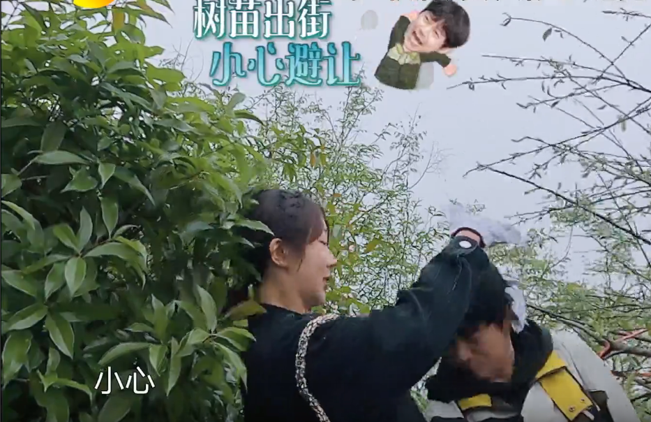 在节目里面,张艺兴开着树苗三轮车,从何老师旁边经过的时候,树苗差点划到何老师的脸,杨紫下意识的双手护住何老师的头,然后带着何老师一起蹲下。