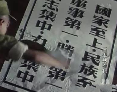 获得战役胜利的三毛,被授予“智勇双全”锦旗,拍照时,摄影师让三毛把锦旗举过头顶,结果变成了领导的锦旗。这时才明白,智勇双全的,必须是委员长。