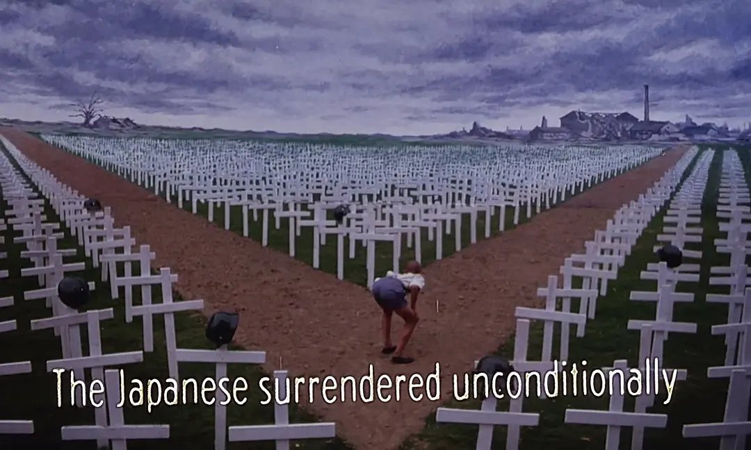 影片最后,三毛站在一排排十字架墓碑前,整个班士兵只有三毛一人光荣复员。
