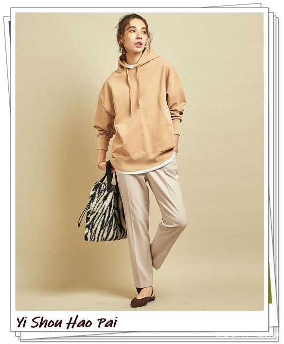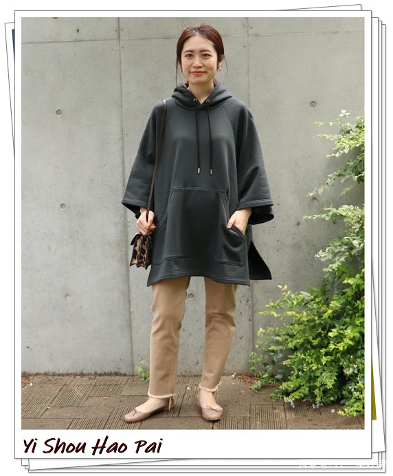 这是一款时尚的卫衣,非常宽松。搭配一条米色的休闲裤,完成时髦的秋冬造型。芭蕾舞鞋还增加了女人味。