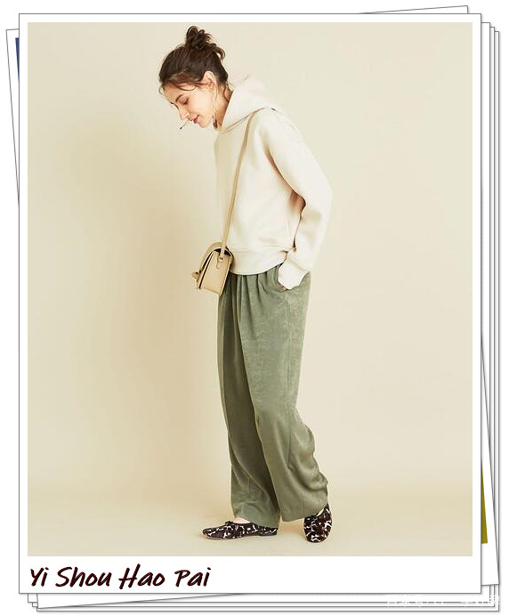 对于卫衣和阔腿裤的休闲造型,可能会显得有些沉重臃肿。你可以通过斜挎一款迷你的包包来添加可爱感。图案鞋也可以增强你的时尚感。另外,选择浅色卫衣对减轻沉重感也会有所帮助。
