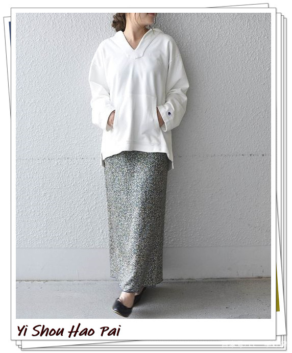 今年流行的缎面光泽半身裙和卫衣搭配的造型。通过搭配女性化的半身裙,休闲卫衣将显得更加时尚。也推荐选择突出女人味的配件。