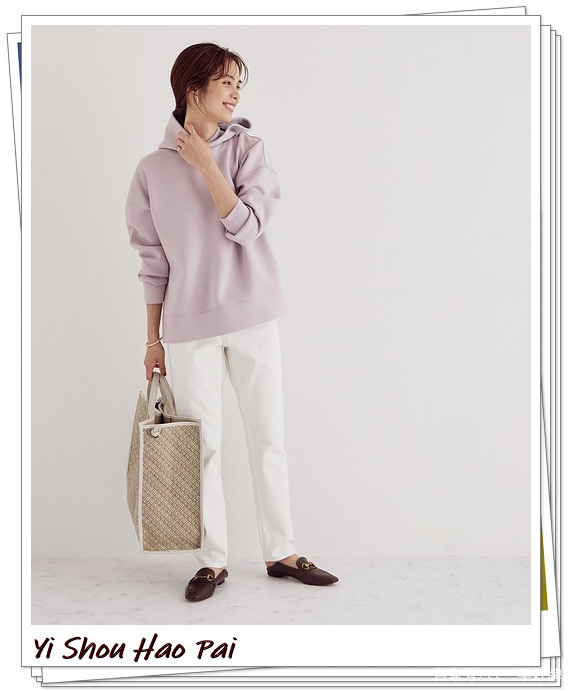 如果你选择美丽的薰衣草色卫衣,休闲的搭配看起来会更加时尚。柔软面料的卫衣非常适合轻熟女人的秋季穿搭。