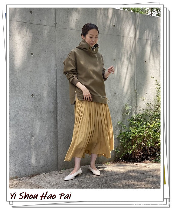 用卫衣搭配柔软而女性化的百褶裙,你的造型搭将显得清新。卫衣侧面的拉链设计给人以时尚的外观。由于兜帽具有立体效果,因此可以让脸部显得较小。