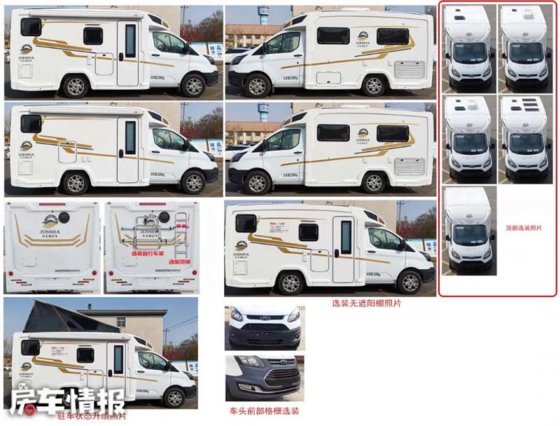 车身尺寸方面,整车长度为5990mm,根据选装不同车宽分别为2225mm和2274mm,车高分别为2480mm、2510mm、2530mm以及2680mm,动力上采用的是一台福特2.0T汽油发动机,匹配6AT变速箱,最大功率149kW,最大扭矩300N·m,日常驾驶舒适,适合2-3口人出去玩。关于这款新车的更多详细介绍,大家可以移步到我们的主页查看往期内容。