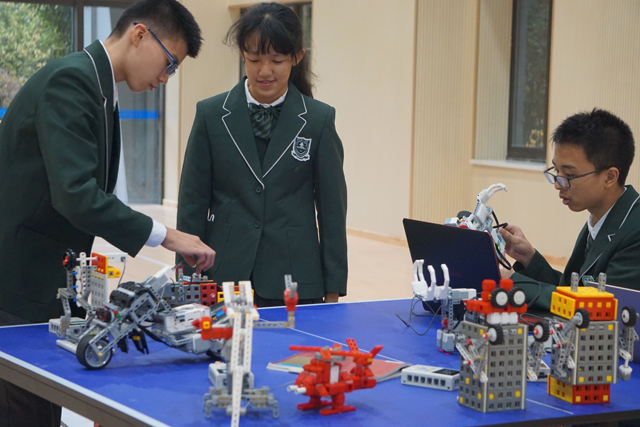 项目三:科技文化节展示。一年一度的科技文化节精彩纷呈,无人机飞行表演、机甲战队、小车竞速、机器人垃圾清理、小车运输……一个个有趣的项目,展示的都是科学的神奇魅力;场地搭建、规划路线、编辑程序,一步步的攻坚克难,提升的正是同学们分析问题、解决问题的能力。