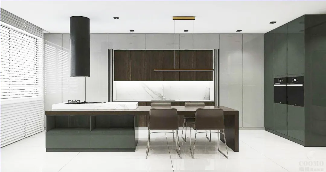 把自然保留在室内, 室内将出现更多绿色。不久前,全球色彩权威机构Pantone推出了2021年室内空间色彩的趋势色盘。深绿色调不仅令人愉悦、轻松,更蕴含创新、改变、平静与冥想等特点。仿佛回归自然,深入森林之中,凸显了整体的高级感。