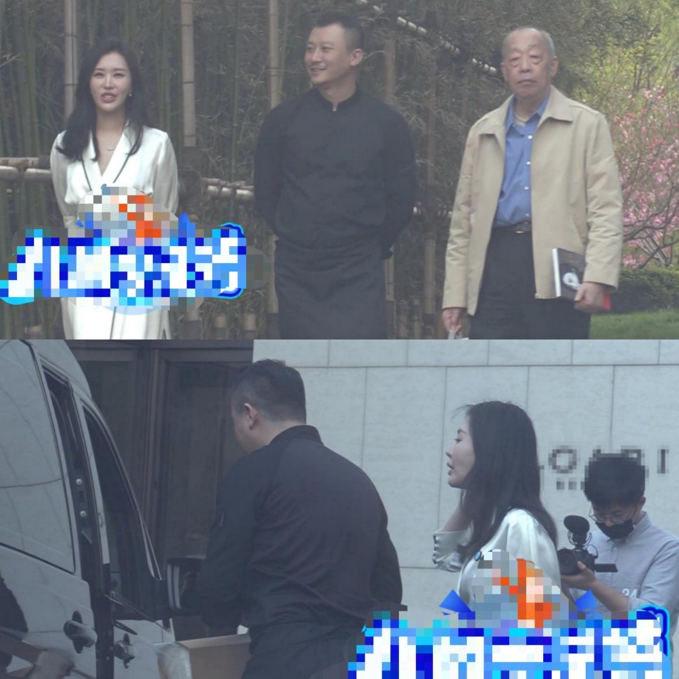拍摄结束后,田朴珺还穿着拍写真时的睡袍,和一个黑色长袍男子送别一名老者。之后,田朴珺和黑衣男子将老者送到车上,田朴珺在站在车旁耐心相送,礼貌周全。送别途中,一行三人的周围一直有人在拍摄记录。