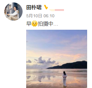 虽然嫁给了富豪,但田朴珺对工作还是非常认真努力,经常和网友分享自己的工作状态。此前,田朴珺在网络上和网友问早安,并分享了自己正在拍摄的消息,还附上了一张拍摄的照片。照片中的田朴珺背对着镜头,穿着非常简单朴素,镜头前方是海天一线,风景十分美丽。