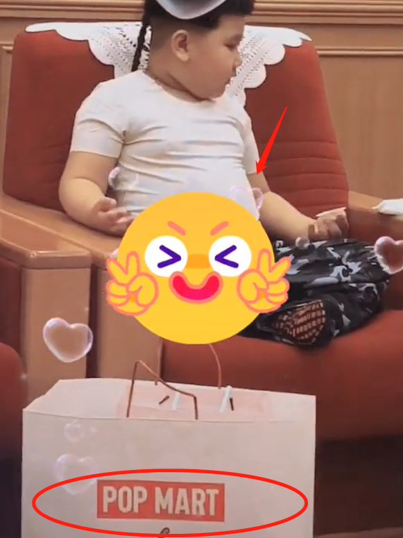 当天郭汾阳手上拿着零食吃得非常开心,脚边上放着某高级儿童玩具的袋子,有的吃又有的玩,一看就是被家人宠爱着的孩子。