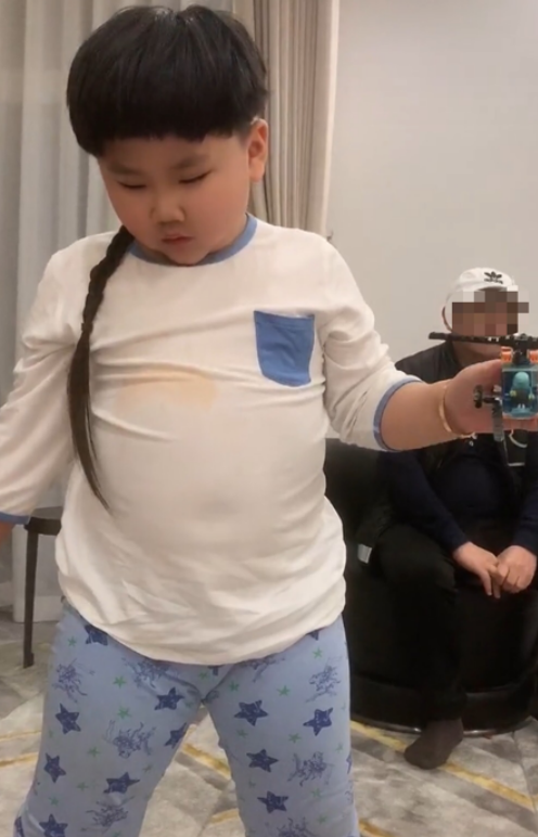 而且郭汾阳的身材也非常的胖嘟可爱,特别是圆滚滚的肚皮,看起来显得尤其有趣,甚至连脖子都看不见了,作为一个年仅6岁的小朋友,郭汾阳身材实在有些偏胖。