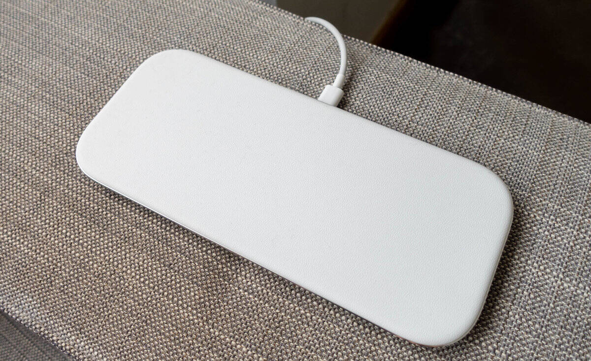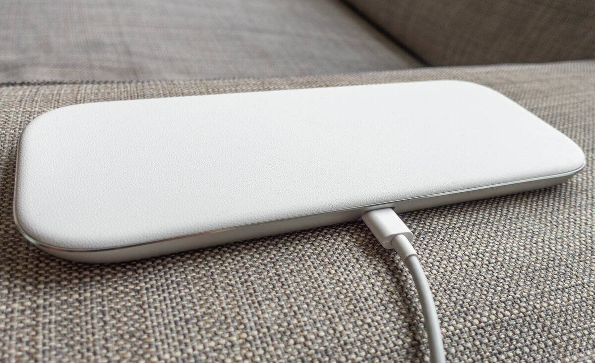 回到设备本身,小米多线圈无线快充板的表面为素皮材质,可以起到不错的防滑效果,同时也为整个充电板增加了一些高级感。由于延续了小米家族的纯白朴素设计,小米多线圈无线快充板理论上可以很方便的放在书桌、沙发和床头等各种位置,而且并不会影响到装修风格。