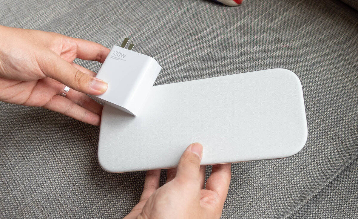 虽然理论上的充电功率为 20Wx3=60W,不过小米依旧为其提供了 120W 充电头,目前还不清楚这样做的目的是什么。充电头与之前 80W 无线充电板一致,采用了魔改的 USB Type-A 接口,因此可以支持 PD 协议以及更高的充电功率。