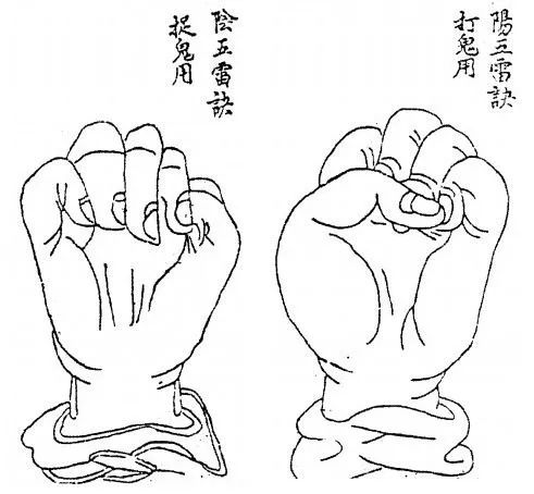 天雷诀:两手掐寅,五指藏甲。