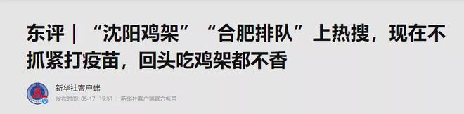 17日下午,新华社东评:现在不抓紧打疫苗,回头吃鸡架都不香。