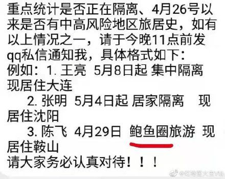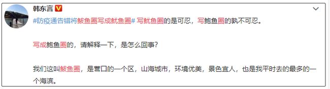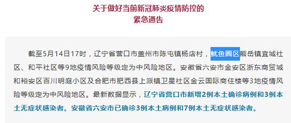 省外地区防疫通告错将营口市鲅鱼圈写成“鱿鱼圈”,现已修正