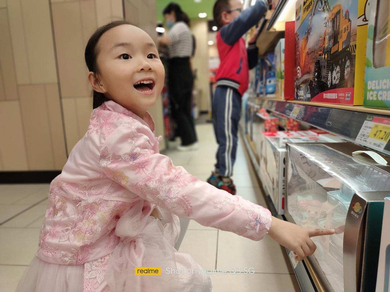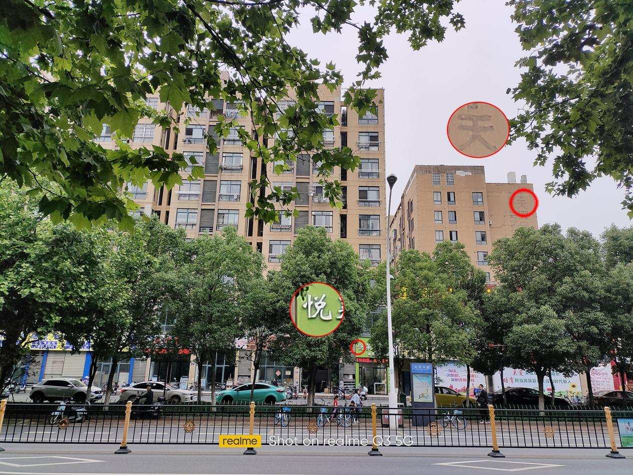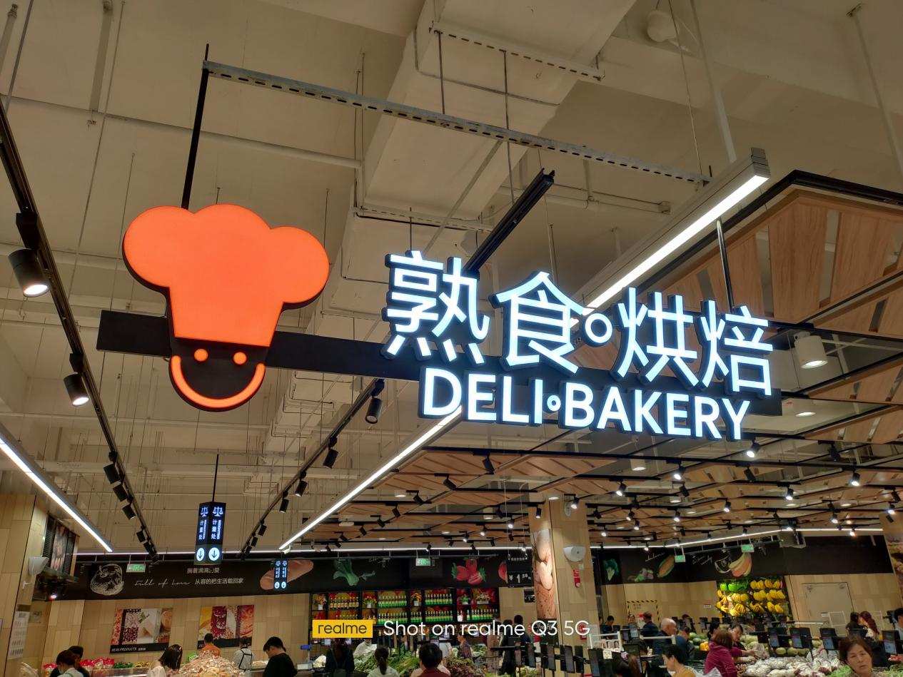 这张室内夜景的光比很大,白色的熟食烘焙相对很亮,而屋顶又没有光线直射,realme 真我Q3的表现是白色字没有过爆,屋顶亮度也够,整体画面的亮度适中。