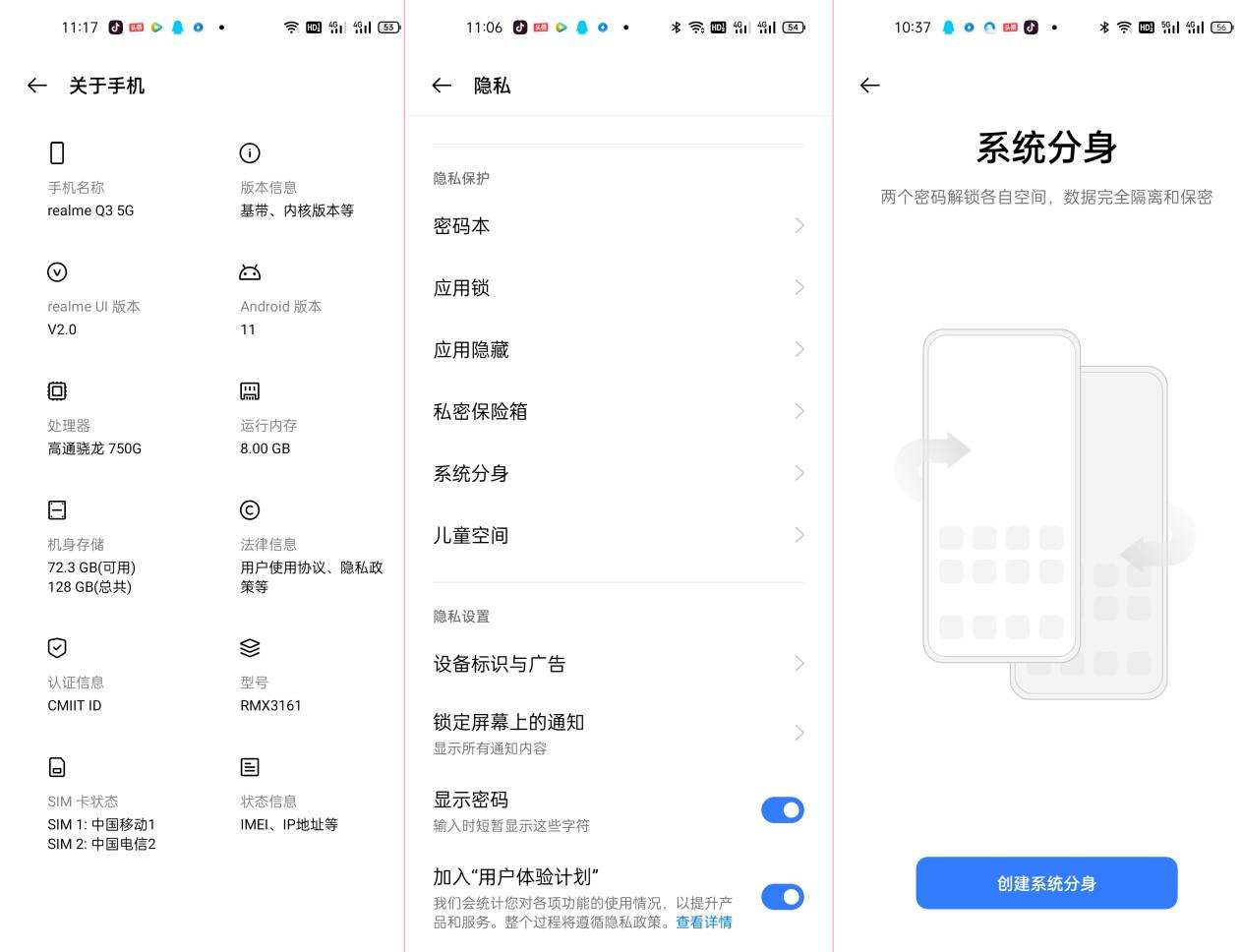 realme 真我Q3搭载realme UI 2.0版本,除了有着Breeno加持之外,也有其他的一些特色功能,比如智能时代用户比较关注的隐私安全问题,realme 真我Q3提供了众多的隐私安全功能,我觉得这方面这款手机做得不错。