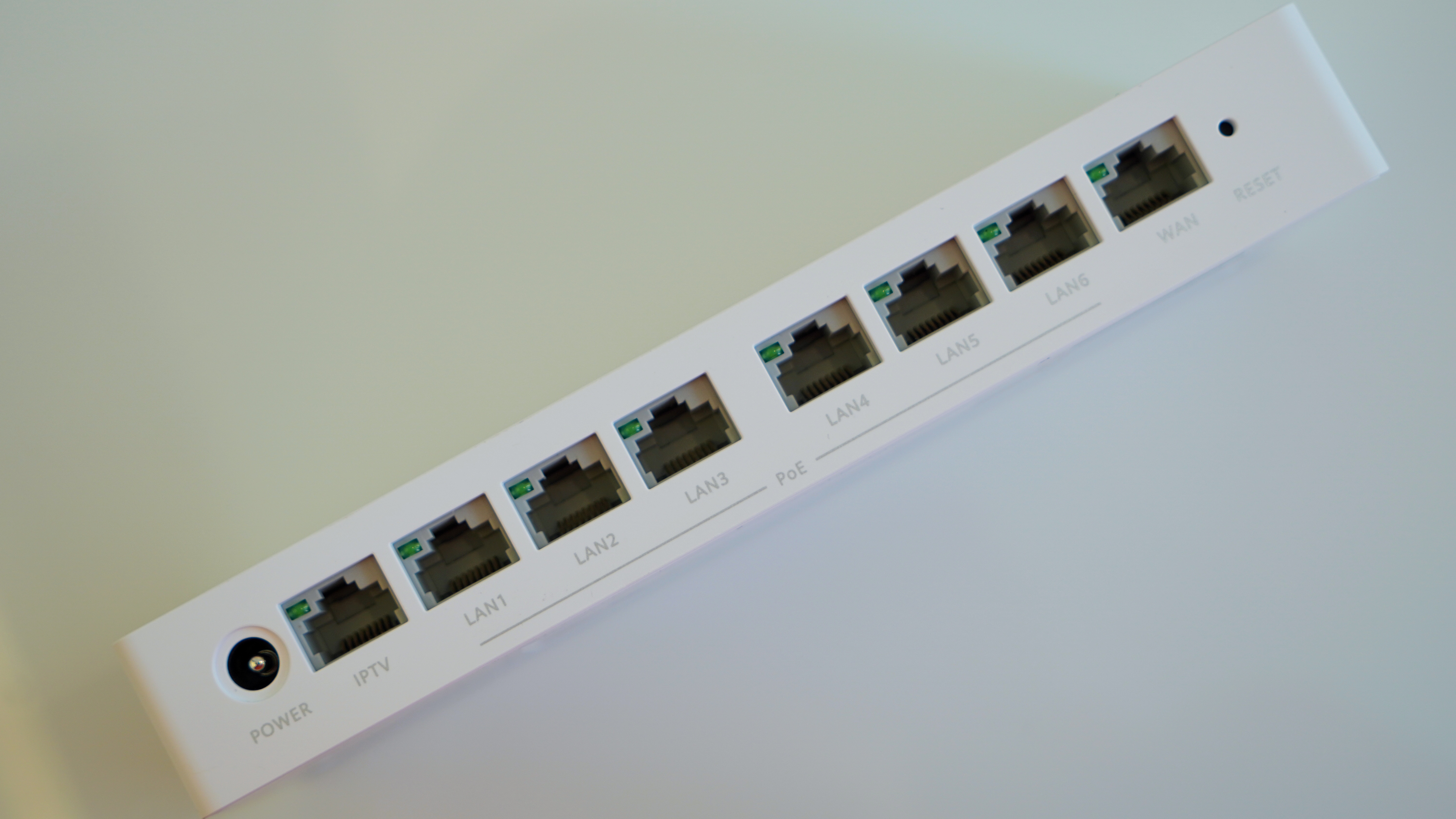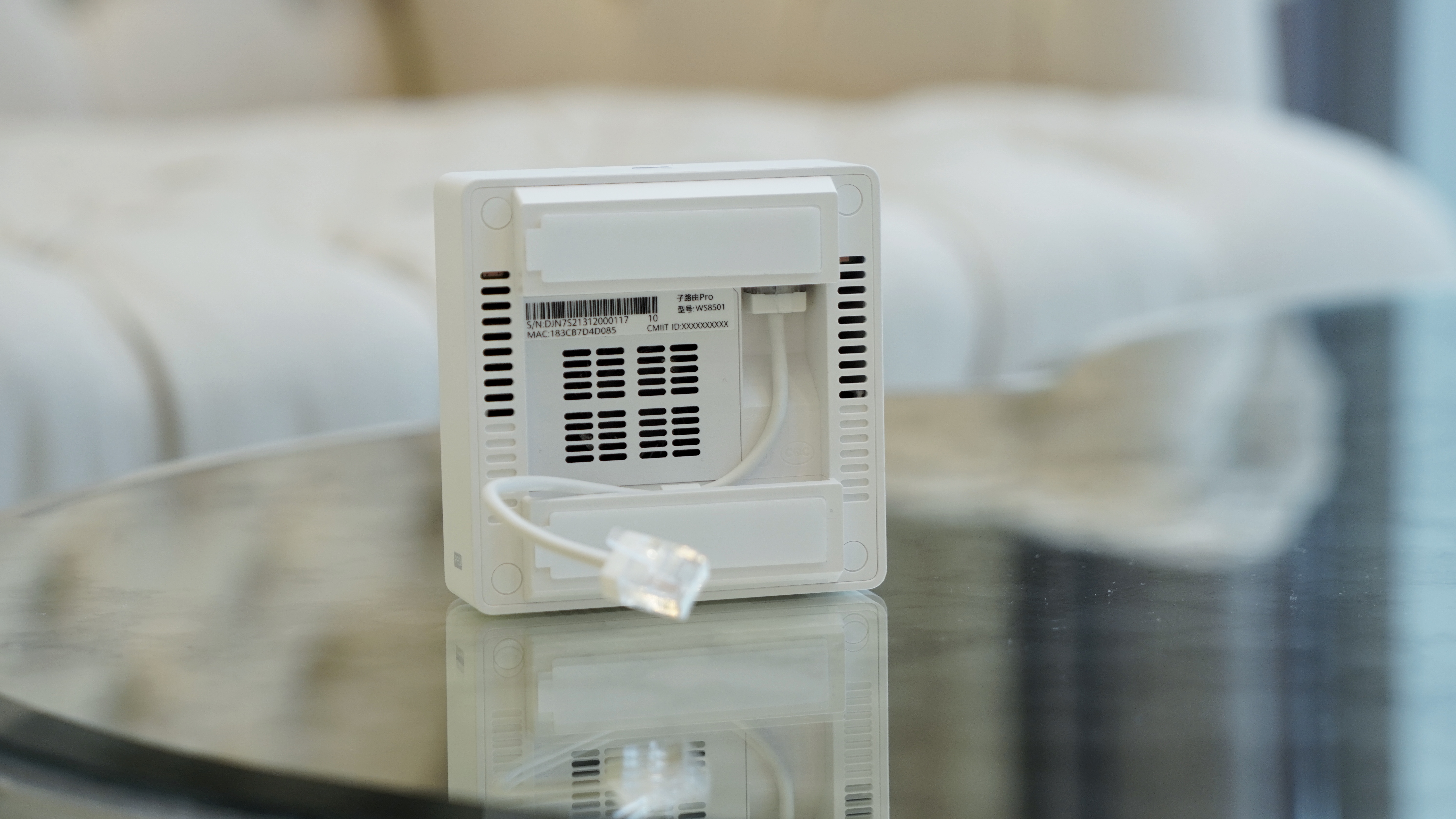 电源适配器我个人挺意外的,采用了类似于电脑和投影仪的板砖造型适配器,我个人认为有两个原因。第一个是子路由没有单独的供电设置,母路由需要通过六个LAN口能够进行PoE供电,这样的设计更加稳定。第二个可能是配电箱体积有限,插孔的位置也是有限的,配电箱最少会放置光猫和母路由两个产品,如果采用直插的大头适配器,插座插孔一定会被浪费,如果用户有较高需求,可能无法满足。