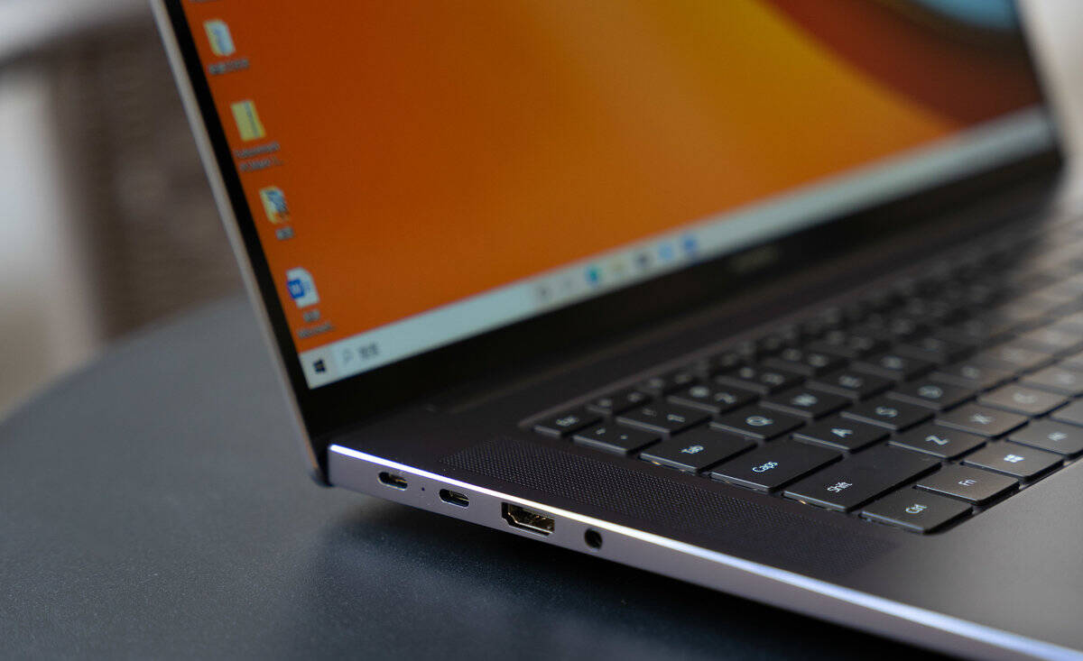 华为MateBook 16 的扩展性非常不错,机身左侧拥有两个全功能 USB-C 接口,一个 HDMI 接口,一个 3.5mm 耳机接口,右侧则是两个 USB 3.2 Gen 1 接口,携带电脑外出再也不需要带上扩展坞了,非常方便。