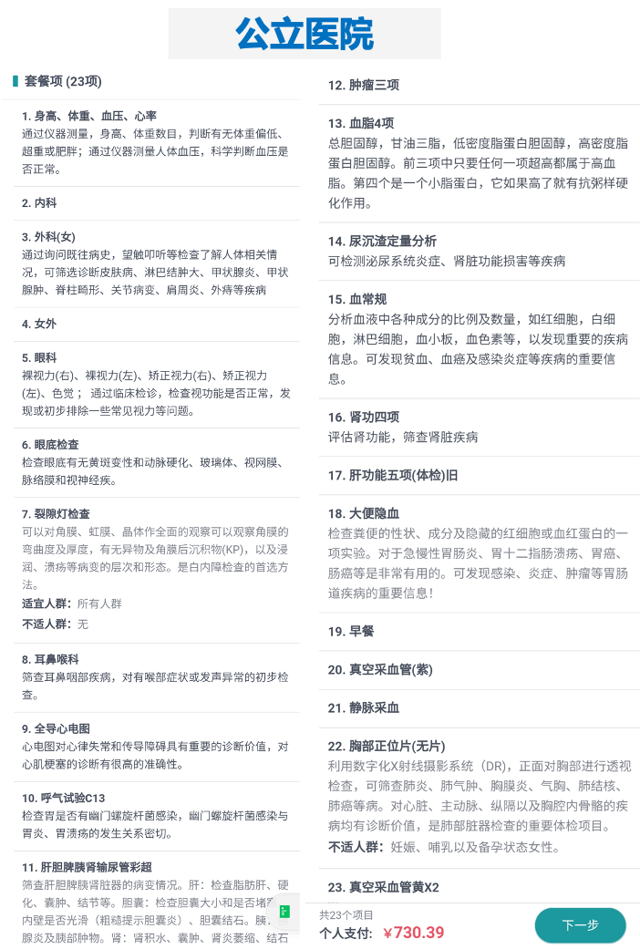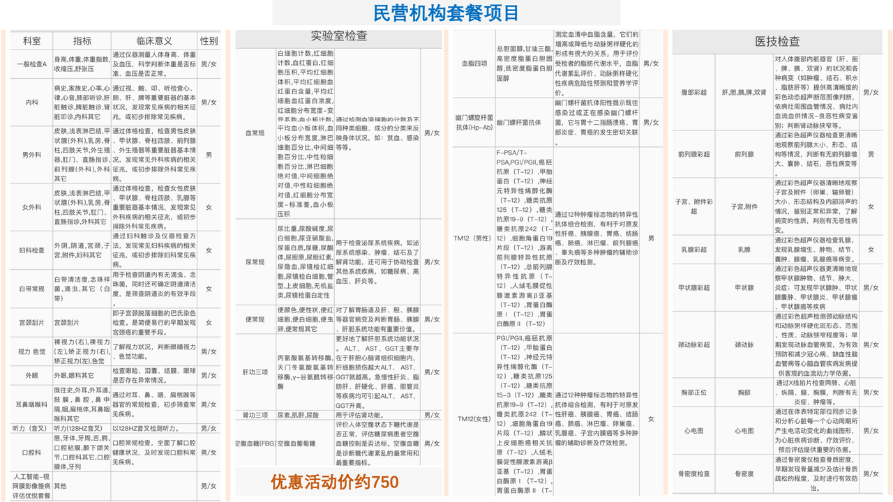 以我所在三甲医院体检中心的套餐对比优惠活动时同等价位的民营机构的检查项目: