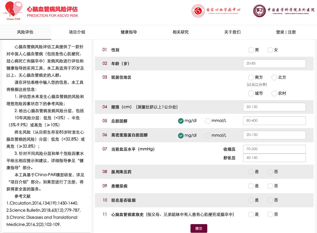 体检报告出来以后,大家可依据心血管病 10 年发病风险评估进行一个自我评估,这里贴一个 阜外医院国家心血管病中心提供的评估工具,在线填写后可以得出大致的风险预测。
