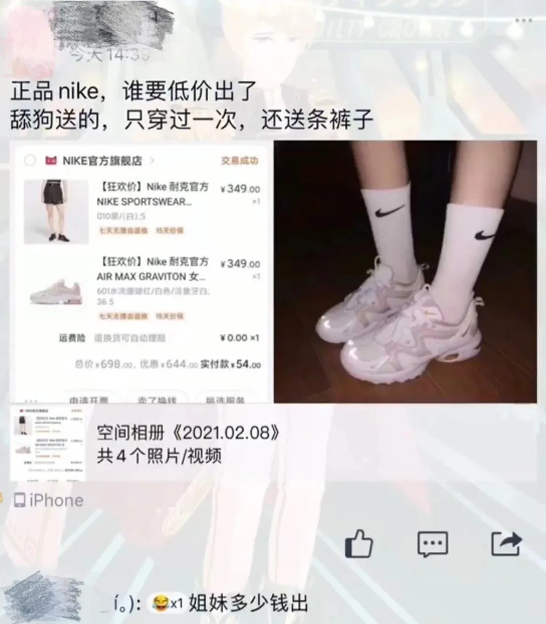 小编也无法得知事件的真假,不过每逢520必有舔狗送女神球鞋随后被转卖这种事倒是屡见不鲜,甚至有些收礼者都不藏着掖着了,这边刚收到货立马挂上QQ转卖。