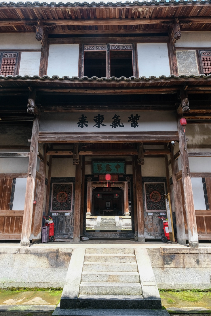 穿过正门就来到堡内,便可看见由建堡主人亲手书写的“紫气东来”四个大字,寓意着吉祥美好,而安贞堡的方位正是坐西朝东。在二进门上方,还悬挂着一块“中宪第”的匾额,可见安贞堡在古代也曾经走出中宪大夫这样的官员,尽管如今早已人去堡空,但昔日的热闹景象仍是可窥一斑。