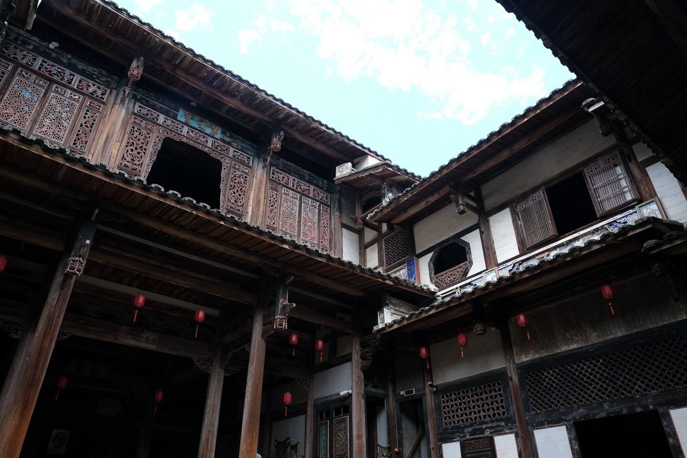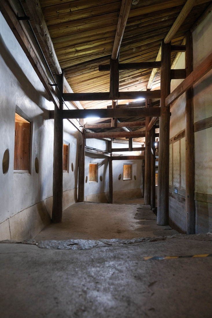 土堡内的木建筑分为上下两层,每层有内走廊,全堡内共有大大小小房间360间,厅、堂、卧室、书房、粮库、厨房、厕所齐全,还有水井和下水道,可容千余人居住。当我在里面穿梭,就仿佛来到迷宫一般,想必当年堡内的孩子们常会在此玩捉迷藏吧,这里承载了他们儿时最美好的记忆。对于大人们来说,土堡也包容了他们了多少喜怒哀乐、悲观离合,这里的一片瓦、一道门、一扇窗、一段走廊都是岁月的见证者。