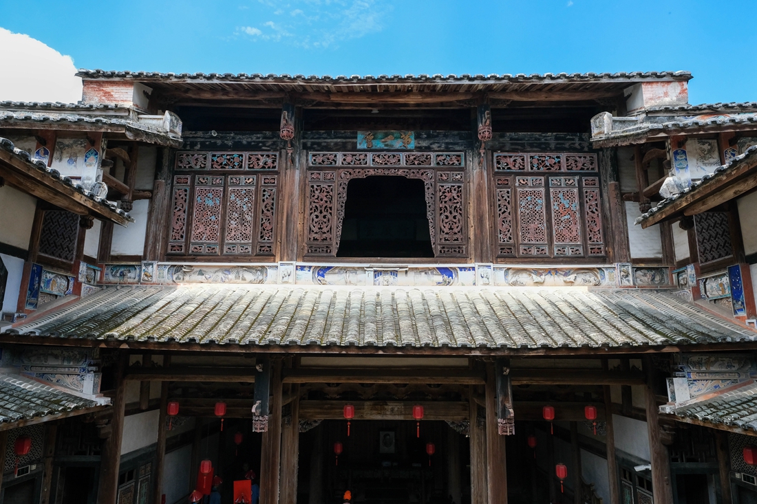 让我庆幸的是,安贞堡在现存不多的土堡中称得上是保存较为完整的一座,堡内屋檐、门窗、梁架、雀替、窗棂、斗拱等精美的雕刻绝大部分都是原来的构件,而那些彩绘和壁画图案在历经一百多年之后,依旧色彩鲜艳,具有很高的艺术观赏和建筑科考价值,故而安贞堡也被建筑专家们称为“国之瑰宝”、“土堡之父”、“福建土堡建筑精华中的精华”,我想它当之无愧。