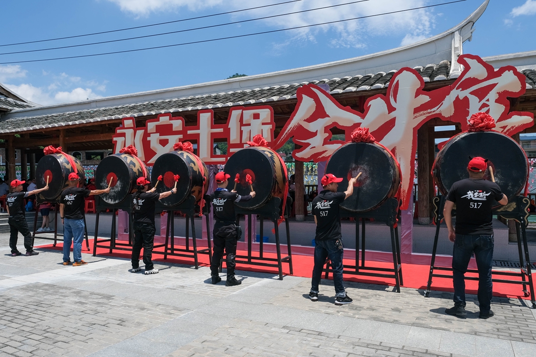 如今的安贞堡不但是国家重点文物保护单位,而且也被批准为国家4A级旅游景区。来到这里不仅仅可以游览安贞堡,同时也可以感受永安槐南镇当地的传统文化和传统美食。这不,我此次前来也赶上了“中国绿都·最氧三明四季行”永安土堡全牛宴活动,池占瑞、池连贯父子应该没有想到自己当年建造的土堡是为了保护村民,如今在这太平盛世里却成为当地的旅游资源,带动当地的经济发展,继续造福村民。