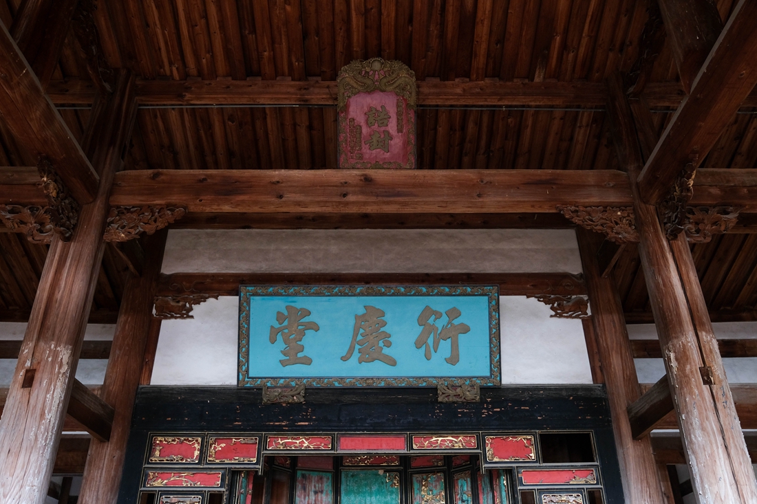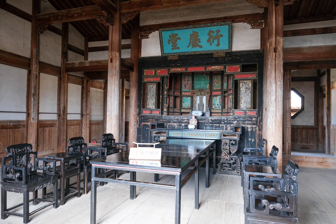 衍庆堂是安贞堡的主堂厅,也是最重要的场所,当年主人会见宾客和家庭聚会便在于此,而“衍庆”二字也寓意子孙能繁衍昌盛。如今房梁上还挂着“诰封”牌匾,可惜原来的牌匾早已消失不见,如今悬挂的这块牌匾是后来请专家进行复刻,少了古朴的韵味了。