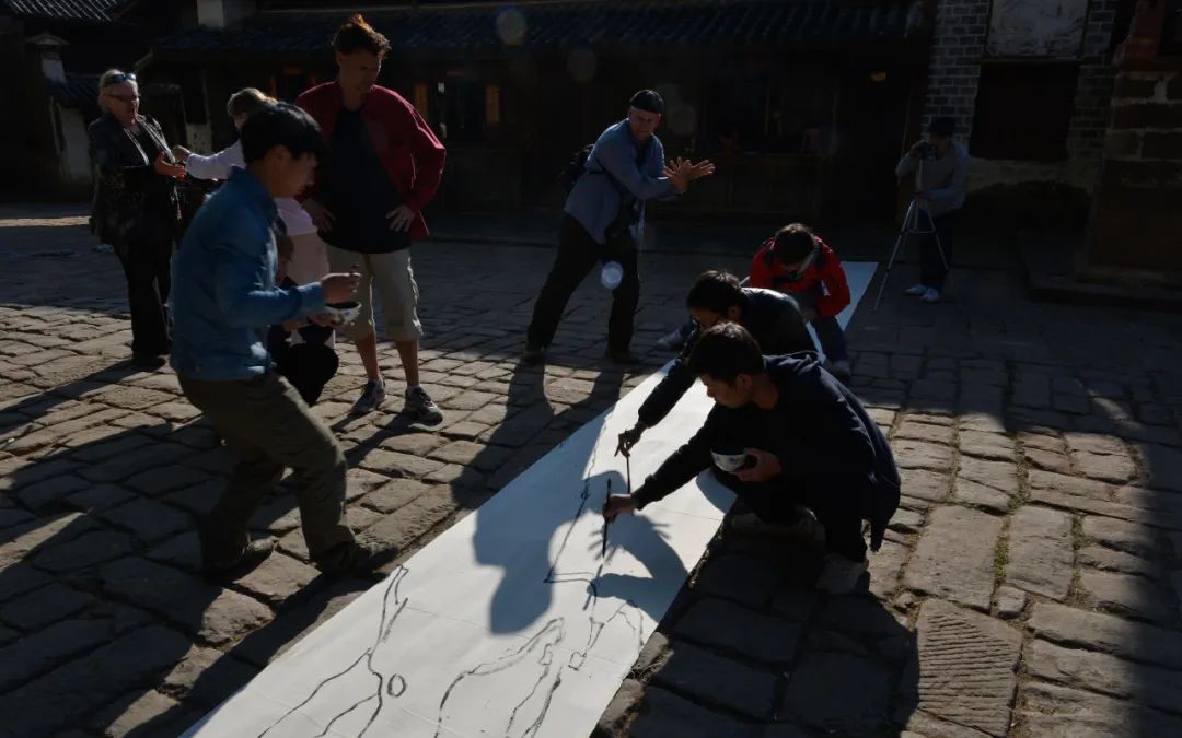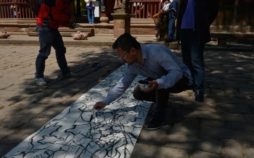 公共行为艺术作品《画影》于2013年4月26日上午8点开始,创作地点:云南省剑川县沙溪古镇古四方街,时间:2013年4月26日上午8点至下午5点。