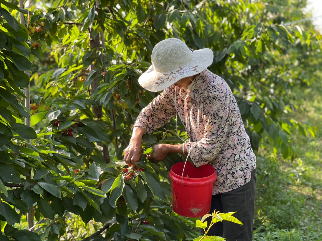 樱桃果飘香,采摘乐趣多,红红的果子吃在嘴里,甜在心里。趁阳光正好,一起去摘樱桃吧!