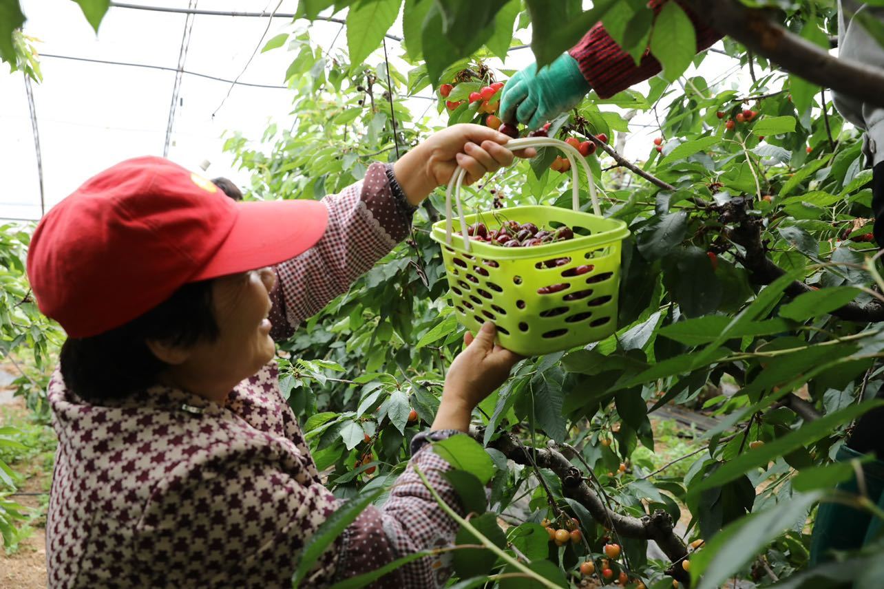 新区正阳路街道办陈坪村的樱桃园里,树上硕果累累,树下随处可见果农忙碌的身影。果农脸上洋溢着丰收的喜悦,正在忙着采摘。