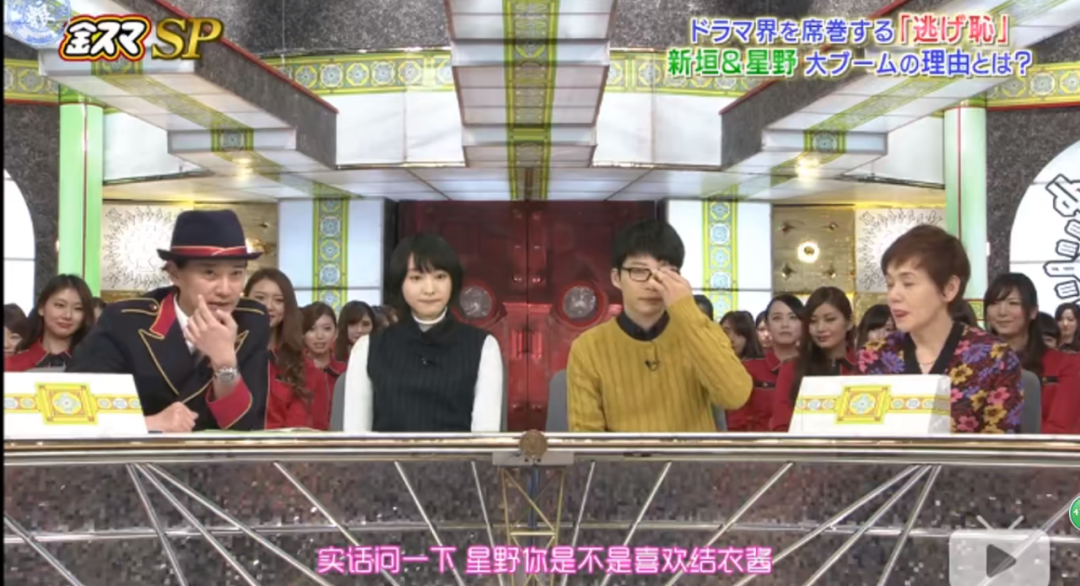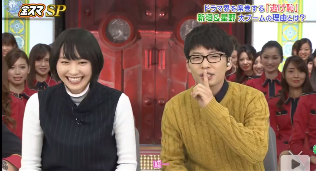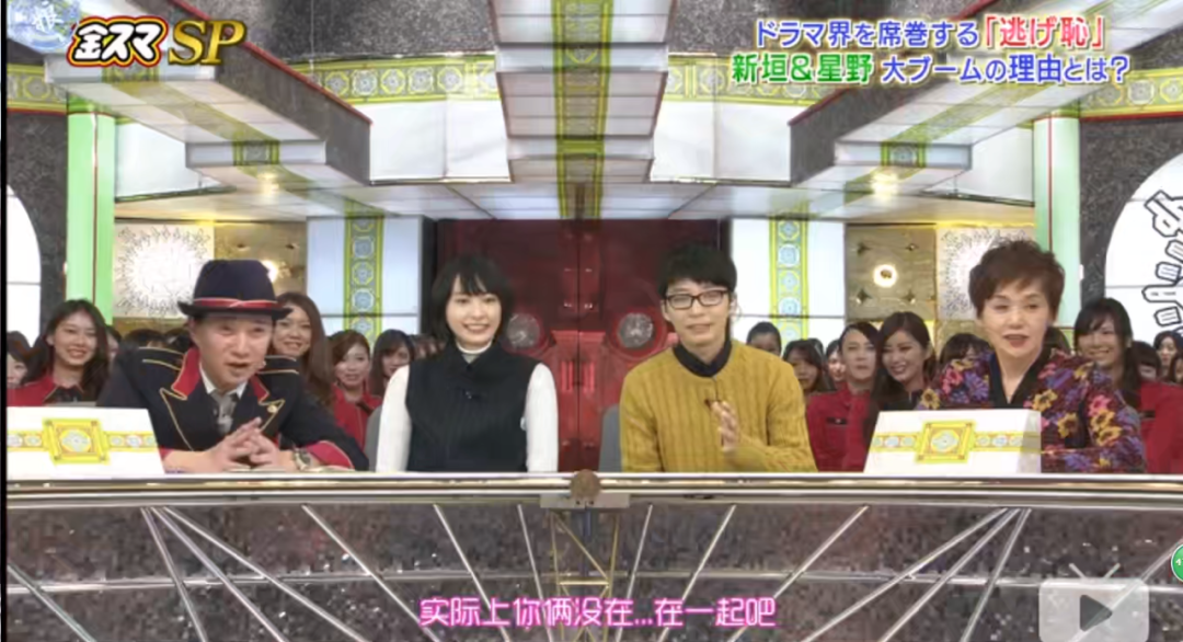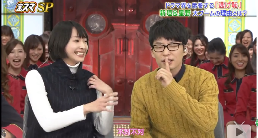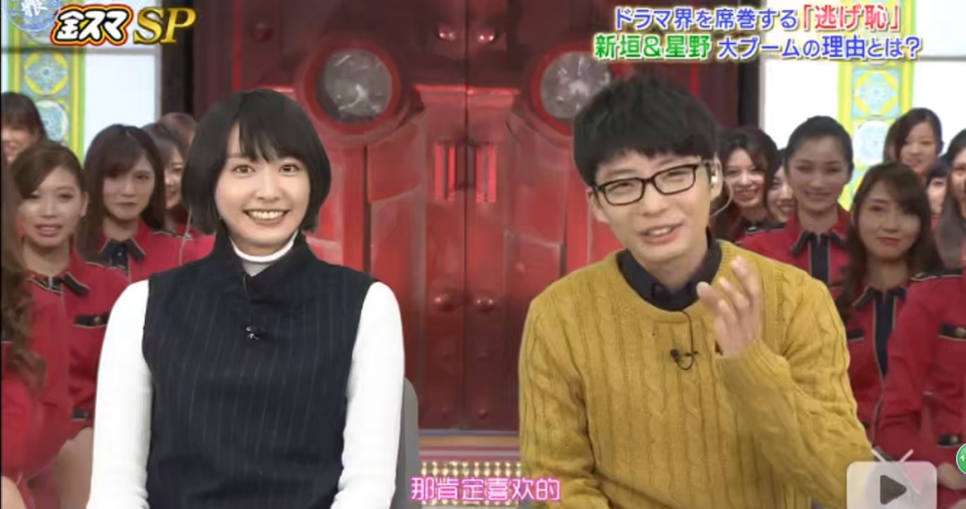《逃耻》宣传期两人上节目,主持人问,星野你是不是喜欢结衣酱,星野源直接大方承认,“那肯定喜欢的,其实开拍的时候我就喜欢上了。”