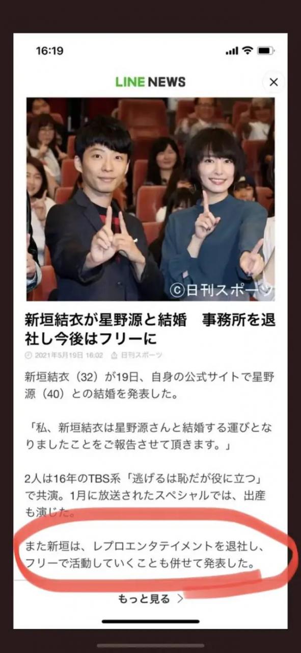 宣布结婚消息的同时,还流出了新垣结衣退社的消息,搞得大家还以为她也要像堀北真希一样成家后就选择了退圈。