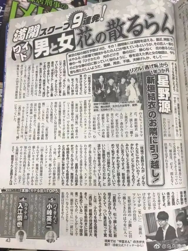 两人越传越真是在2018年3月,日本杂志《女性SEVEN》报道称,星野源搬家到了新垣结衣公寓隔壁,两人的住处只要走几秒钟就到。