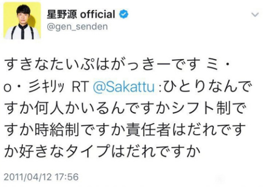 坛子(微信号:tanziapp)挖坟到最有意思的资料是早在10年前,星野源就回复过网友,最喜欢的类型是新垣结衣。