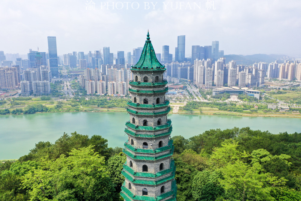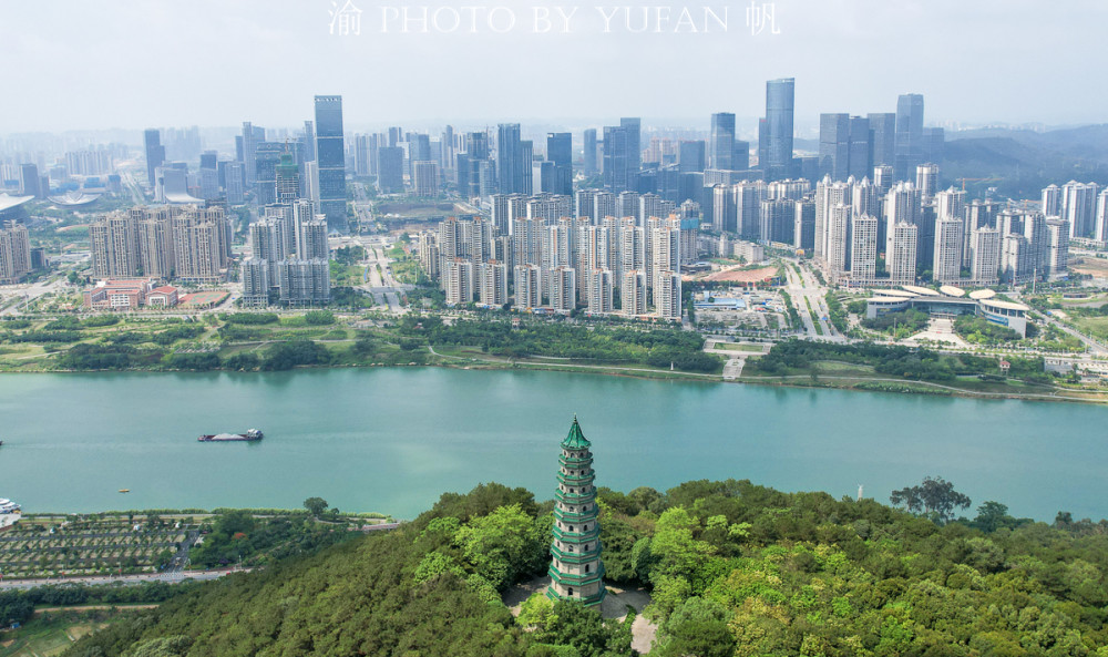 与龙象塔隔江相望的是南宁的新区,高楼林立,车水马龙,一片繁华景象,如果说龙象塔代表的是南宁的过去,那么对面的新区则代表着南宁的未来,隔江相望,既形成鲜明的对比,又无比的和谐统一,构成一道漂亮的城市风景线。