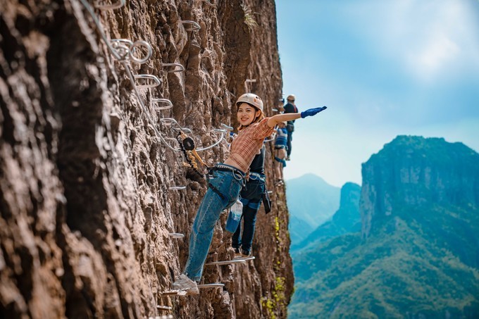 飞拉达, 意大利 语“ViaFerrata”音译,意为铁道式攀登,利用铁索、脚蹬的辅助,进行峭壁攀爬的登山方式。让不会攀岩的人也能体验天然峭壁上的惊险刺激。而 雁荡山 也有飞拉达,堪称“ 亚洲 第一险”,华东挑战最强的飞拉达。