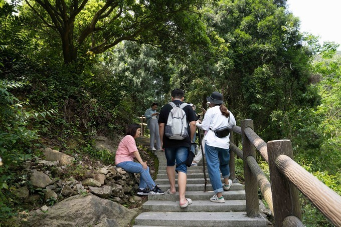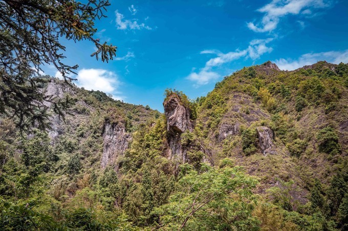 想玩飞拉达,还需要爬一个坡上山,沿途风景大美,不少的奇 石林 立,还赋予了它们名字和故事,其中有两块奇石给我印象很深刻,一块叫“ 雁荡山 之根”,另一块叫“亲嘴猴”。“ 雁荡山 之根”笔直耸立在半山腰,真的像擎天一柱直指苍天,又像孙悟空的定海神针,守护着这一片山峦,而“亲嘴猴”真是乐死我们了。