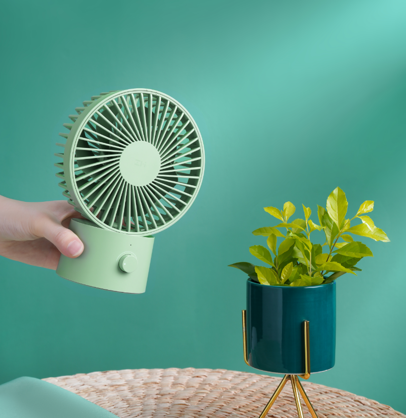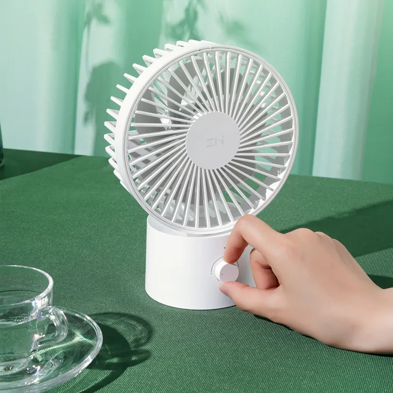 IT之家 5 月 20 日消息 紫米公司今日正式发布了 ZMI 桌面风扇。这款产品内置电池,可以配合空调在夏天增加冷气循环,提高舒适度。风扇具有白色、淡绿色两种配色可选,采用七羽扇叶设计,风量柔和噪音小。