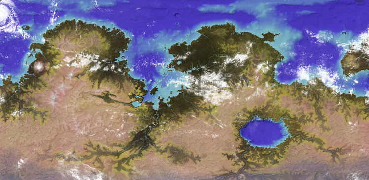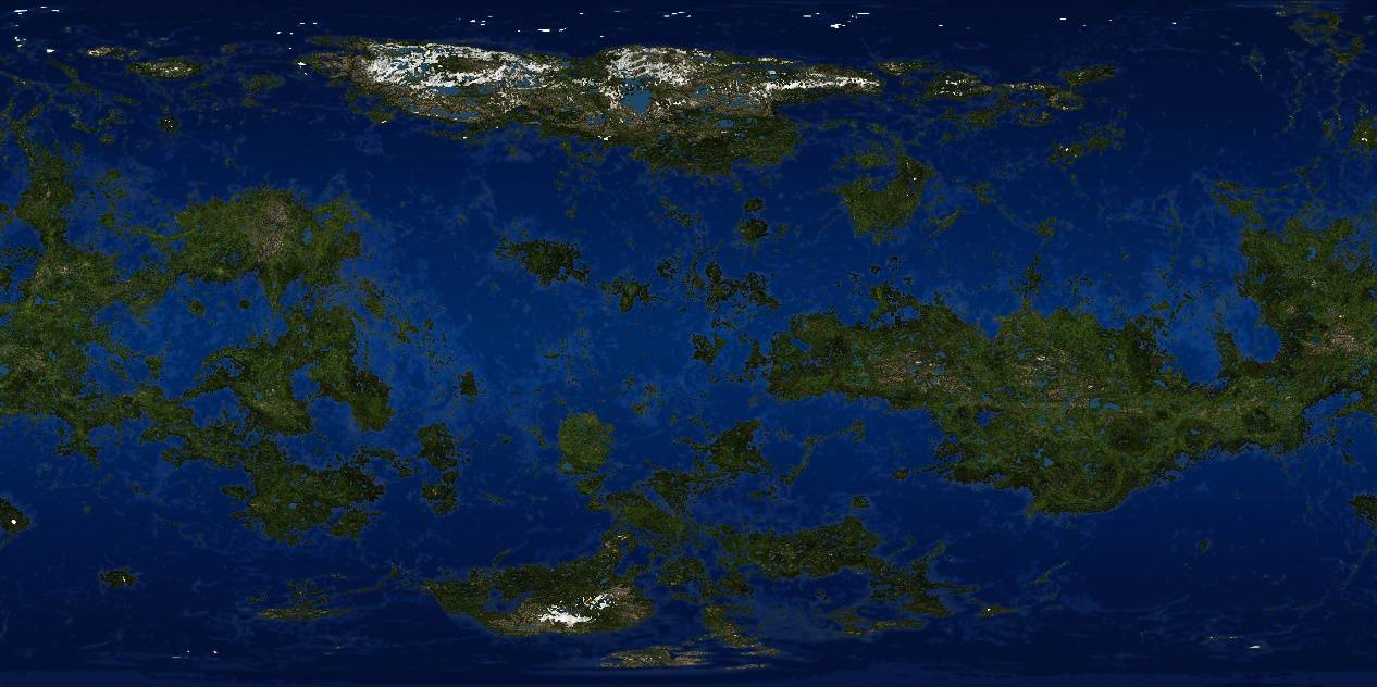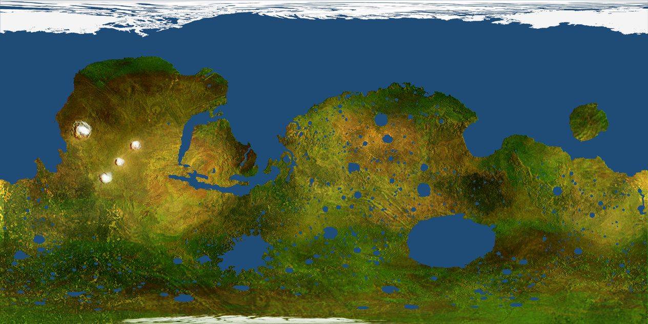 “ Dragonite-2”的帖子提出了地球化其他星球这样的任务,最终的结果将是什么。该地图显示了北部的多山大陆,东部的一系列平坦土地,西部的一系列大岛和南部的大型群岛。