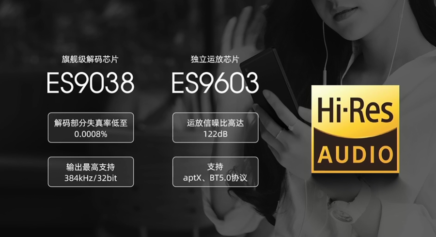 HiFi 音质方面,海信 Touch 音乐阅读器搭载了 ES9038 旗舰解码芯片,并配有 ES9603 独立运放芯片,支持最高 384kHz/32bit 输出。